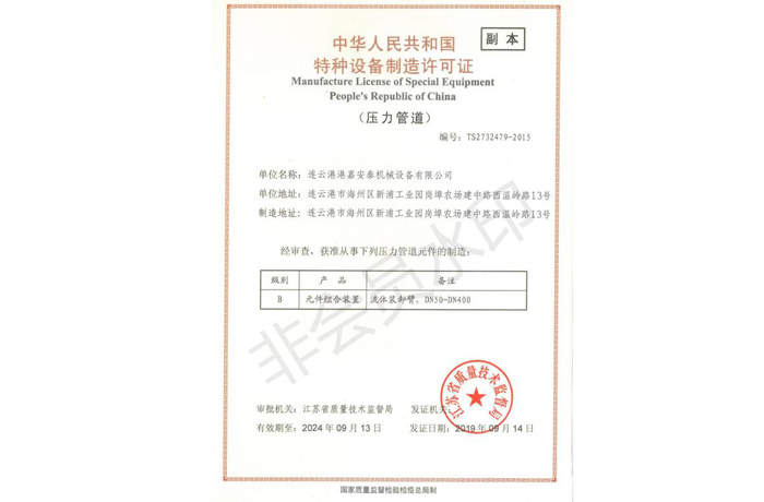 獲得了特種設(shè)備制造許可證(壓力管道)、防爆合格證等多項(xiàng)證書